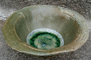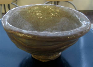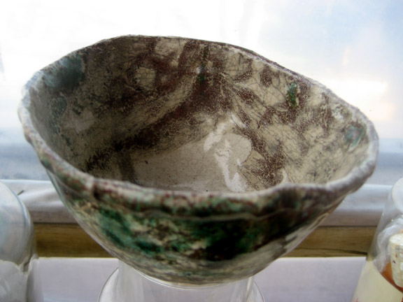 a series of mixed-media sculptures. These bowls of various shapes are of